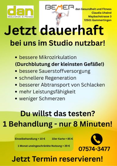 Direkte Probebehandlungen sowie Leihgeräte für Mensch und Tier sind verfügbar!